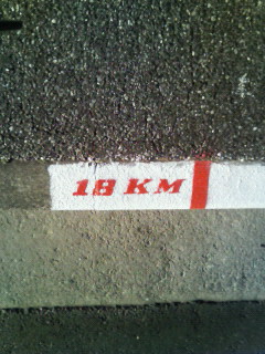 ウインタースポーツの楽しみの一つは、駅伝やマラソンのロードレースである。学生時代に自分も少しかじったことがあるので、駅伝には特に興味を持ってみている。 駅伝の最大イベントは箱根駅伝であるが、箱根の話は別の機会にじっくり取り上げるとして、まずは明日23日に行われる国際千葉駅伝のことについてふれてみたい。 これまでは、男女別に行われていたのだが、今年は男女混合レースとして行われることになった。2つのレースを見ることができたのだが、一つになって少し損をした気分になる。 瀬古の引退レースとなったのが第1回大会であるから、今年で19年目になる。コースは千葉市運動公園をスタート・ゴールとする周回コースである。数年前までは海岸通を走っていたため、自転車に乗って観戦したのだが、4~5年前からコースが変更されて我が家の目の前の道路を走ることになった。 道路に距離標識がところどころ設けられているが、18Kmの標識が100mほど離れたところにある。従って、私の観戦スポットは17.9Km地点ということになる。1区10Kmが男子、2区5KMが女子になっており、18Km付近への到着時刻は51分くらいだと思う。スタートが13時07分だから13時58分ごろに沿道で声援を送る私の姿が映るかもしれない。 ←縁石に左のような表示がされている 残念なことに、15Km地点でタスキリレーが行われてから7~8分後は丁度2区を走り終えた選手のインタビューかCMが流される時間帯になってしまう。これまで、男子はライブで、女子はビデオ放映されており、ビデオを見る限り、18Km付近が映し出される確率は5割くらいである。 今年はエチオピアが参加しないので、ケニアの独走になると思うが、3区は多分今年1万メートルで4位の記録を出している選手が走ると思うので、その速さ(シューっという音がして走りすぎてゆく)を堪能してみたいと思う。 明日の夕方には観戦記をアップしよう。 サッカーの五輪代表が、日本、韓国、オーストラリアに決まった。いずれも引分により出場が決まったのが面白い。引分が命運を決するという、サッカー文化の成熟を感じさせられる。