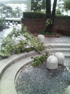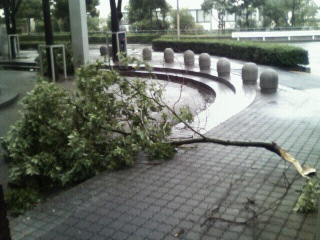 例によってコンビニまでサンスポを買いに出かけようとしたが、歩くのもままならず途中で引き返した。道路には折れた枝が散乱しており、中には3m位のものもある。これが直撃すると大怪我では済まないと思うと、風が治まるまでは家にこもっているほかにしようがない。 この大きさの枝が直撃すると、痛いどころではないだろう。 京葉線は全線で運転を見合わせており、歩いている人はほとんどみない。我が家のマンションは14階建てが4棟であるが、東側には32階の超高層が2棟と、15階が4棟、北側には公団の20階建てが4棟隣接している。ただでさえ湾奥で風が強いのに加えて、ビル風があり強風には弱いエリアである。 子供の頃は大阪に住んでいたが、大きな台風に何度か遭遇した。洞爺丸が沈没した時は幼稚園だったが、淀川が決壊するということで夜中に山の上の小学校まで避難したことがある。 伊勢湾台風や、第二室戸台風などでは瓦が吹き飛び、親戚中総出で倉庫の瓦の補充をした記憶がある。それ以降台風が比較的少ない関東地方に移ったこともあり、大きな台風に出会った記憶がないのだが、今回の台風は久々の強烈な台風という感じがする。 陸上では気温が最も高いのは8月だが、海では少しずれて9月の水温が最も高くなる。その結果、海水温をエネルギーとする台風が最も発達しやすいのは9月であり、前述の記憶にある大きな台風はいずれも9月に発生している。 今年は、陸上だけでなく海水温も高くなっているようで、最近の新聞のつり欄では、温度が上がりすぎて不調という記事をしばしば見かける。例年よりも高い水温のせいで、上陸しても衰えることのない、パワーのある台風になったのであろう。 少し風が治まってきたようであり、そろそろ新聞を買いに出かけようか。