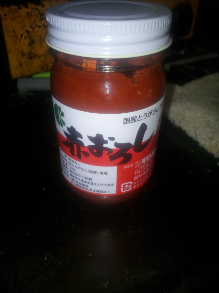 逆にシベリアには猛烈な寒気が襲来しており、今朝の映像ではお湯をマンションのベランダから放り投げると、地面に落ちるまでの間に凍り、煙となって落ちる様子が映し出されていた。この寒気が週明けには日本にも南下してくるようで、覚悟をしておいた方がよさそうだ。 寒くなると、ほとんど毎晩のように鍋物を食べている。一昨年、ポン酢で「旭ポン酢」というのを見つけてからは、より食べるようになったのだが、この冬はもみじおろしの美味しいのを見つけたのでなおさら、鍋を突っつく機会が増えそうだ。 スーパーで売られているもみじおろしをいくつも試してみたが、どれも水っぽくて使う気にはならず、もみじおろしを使わずに鍋を食べる事が多かった。 先日、行きつけのエビの桑田で「赤おろし」という銘柄のもみじおろしを売られているのを見つけた。ビンの外から見ても赤さが目立ち、見るからに辛そうなもみじおろしだった。 試してみようと、手に取ったところ「チョッと高いけどいいかい」と親父が言う。聞いて見ると950円とのこと。スーパーではせいぜい200~300円だから高級品である。 一瞬躊躇したのだが、高級品といっても1000円札でおつりがあり、一晩で使い切るとも思えないので買い求めることにした。 使ってみると辛さが強烈なのだが、旨味があり病み付きになってしまいそうだ。たくさん入れすぎると辛すぎるので、少しずつポン酢に入れることになり、一瓶で30回位は鍋のお供にできそうだ。1回あたりにすると30円ほどなので、それほどのものではない。 今年の冬は厳冬になりそうだが、「赤おろし」という強い味方を得たので、乗り切れそうな“自信”がわいてきた。 PR