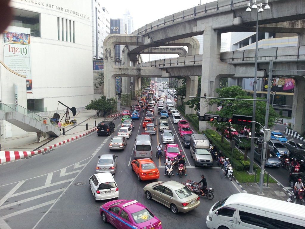 バンコクでも、東南アジアの他の都市と同じように渋滞が大きな問題となっている。公共交通機関が十分整備されておらず、経済成長に伴って自動車が爆発的に増えたことが共通する渋滞の要因である。